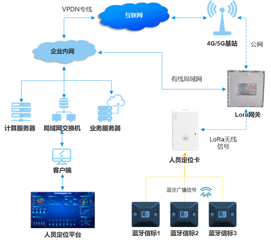 藍牙定位:適用于隧道內局部高精度定位需求(如作業面、危險區域),定位精度可達3-5米。