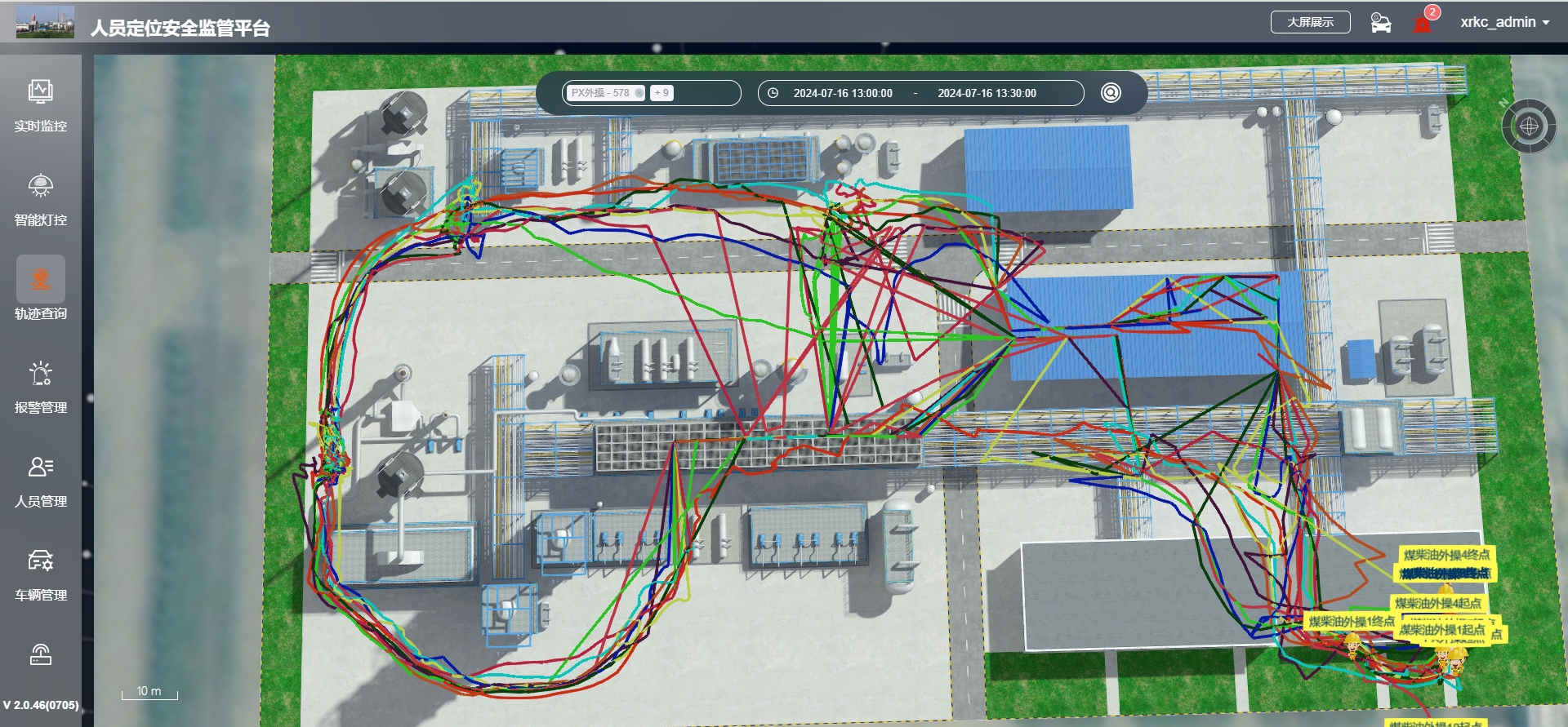 系統(tǒng)能夠在2D/3D電子地圖上實(shí)時(shí)、精準(zhǔn)地顯示油氣化工廠內(nèi)所有人員的位置分布。管理人員可通過(guò)電腦或移動(dòng)端管理平臺(tái),便捷地分樓層、分車間查看人員實(shí)時(shí)位置,對(duì)重點(diǎn)人員、關(guān)鍵崗位人員進(jìn)行單獨(dú)追蹤,實(shí)時(shí)掌握其行動(dòng)軌跡。