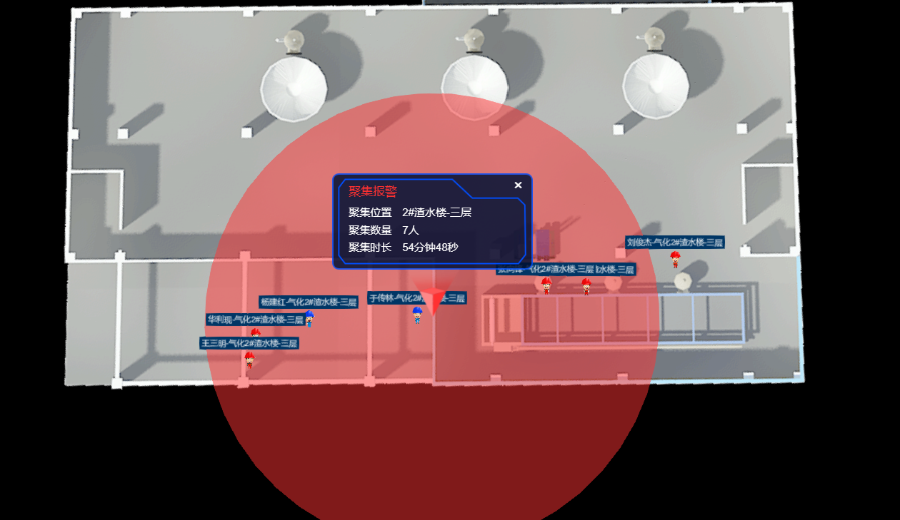 全面展示各區域人員分布及報警信息,各類信息以表格、熱力圖形式展現。